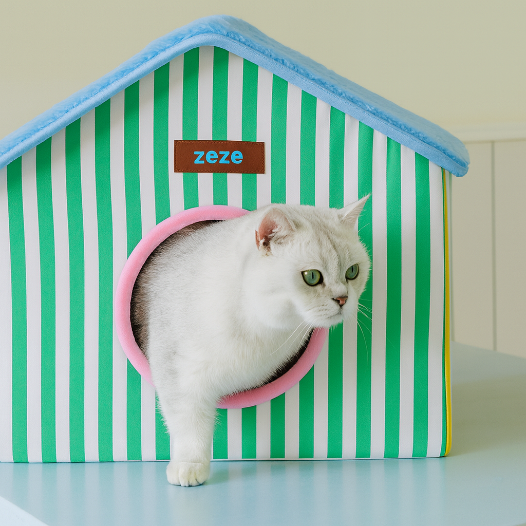 Zeze Foldable Cat House with Scratch Roof & Toy