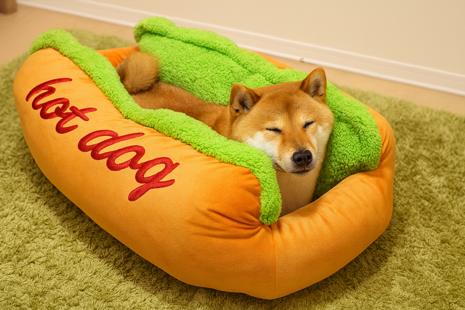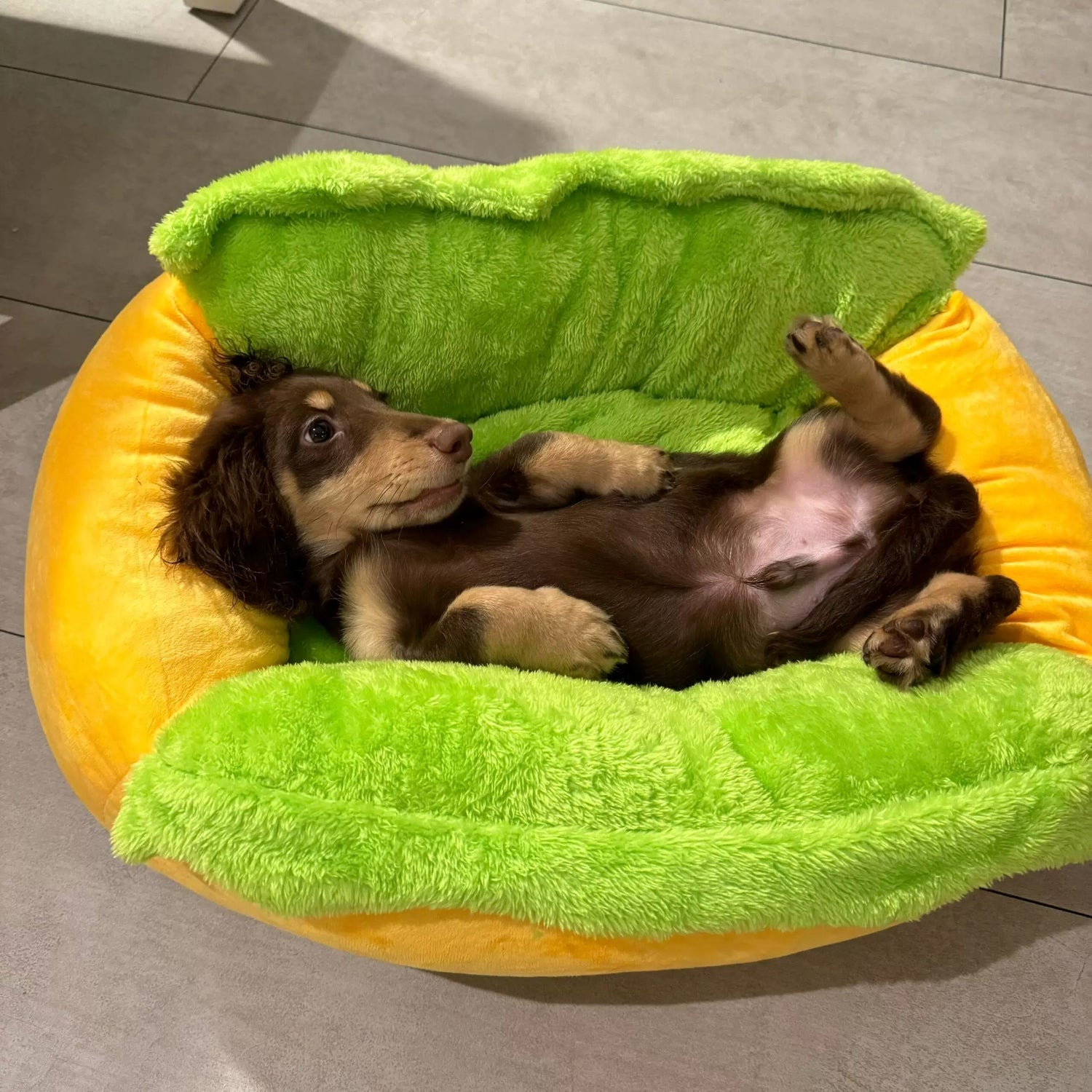 Hot Dog Shaped Pet Bed with Removable Cushion