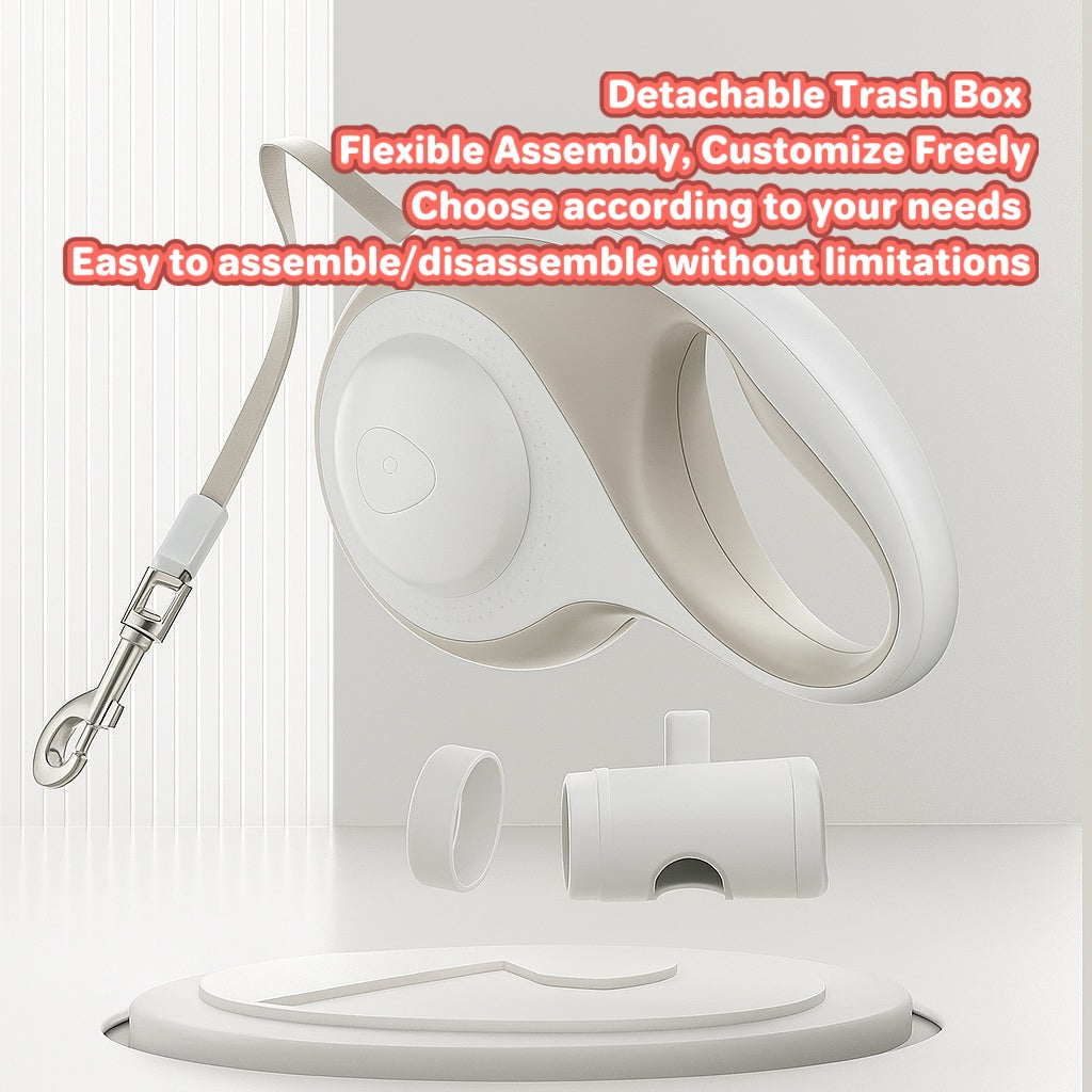 All-in-One: Retractable leash with detachable waste bag holder for hygienic walks.